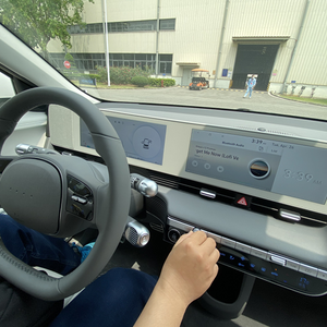 Táp-lô xe Hyundai Santafe 2024 nổi bật với màn hình cỡ lớn nối liền 2 màn hình trông hiện đại và sang trọng, hướng tới tương lai,